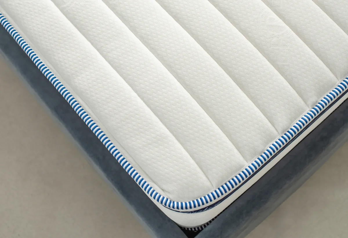 Особенности серии JustСерия матрасов Just предлагает идеальное сочетание стиля и комфорта, создавая уютную атмосферу в вашей спальне. Каждый матрас из этой серии отличается аккуратной отделкой с голубым кантом по краю, что придает ему современный и элегантный вид. Мягкая ткань с едва заметным узором покрывает поверхность матраса, обеспечивая не только визуальную привлекательность, но и невероятный комфорт.